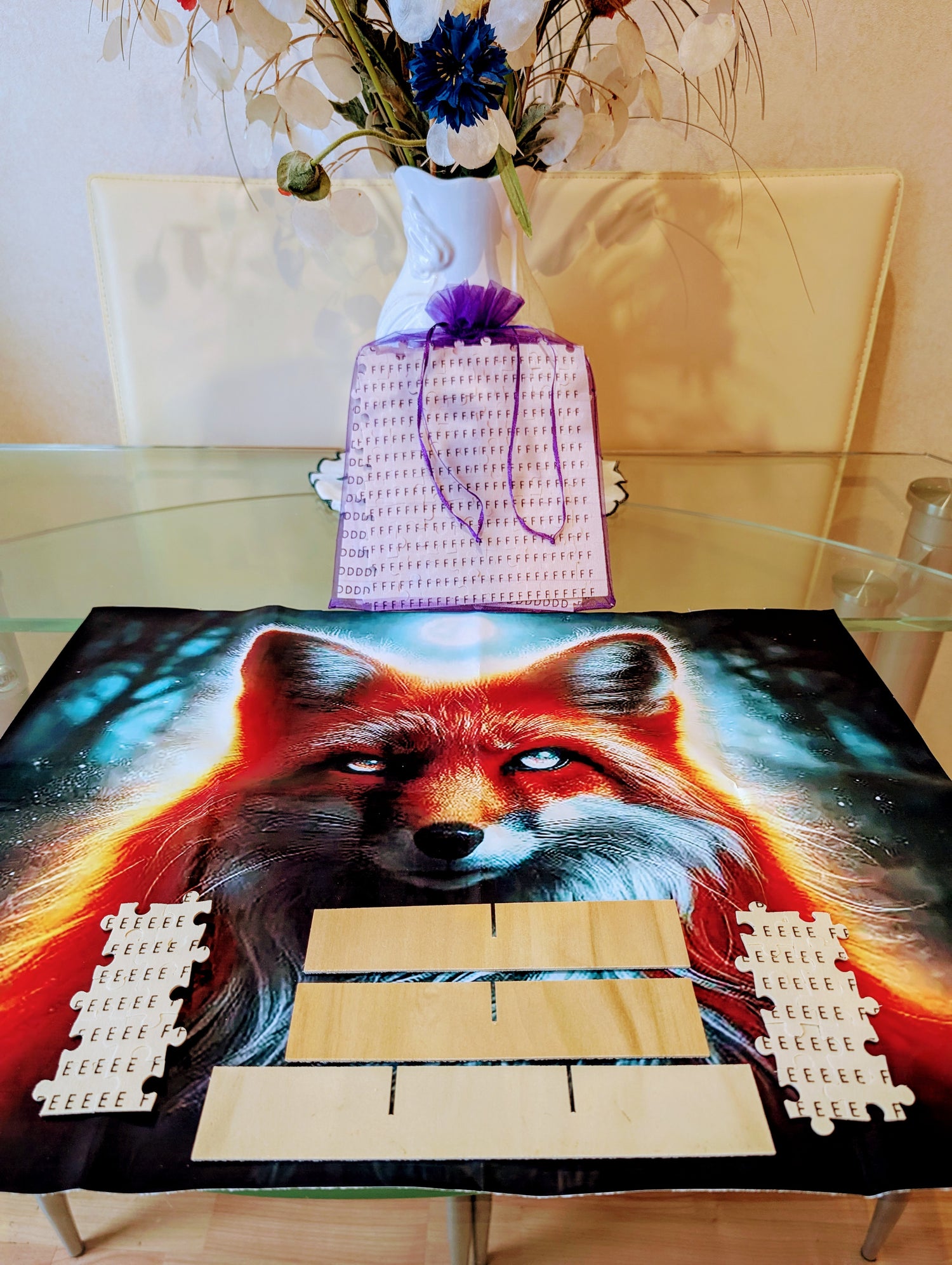 Your jigsaw pieces will come stored in our simple yet elegant net bags.